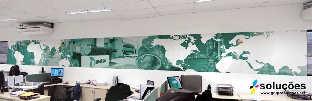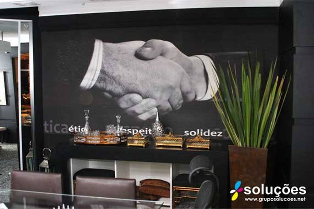 Agora você pode ter o seu papel de parede com a estampa ou imagem que desejar. Além disto é possível imprimir o material no formato de sua parede! Através do uso da impressão digital a Grupo Soluções pode imprimir uma decoração exclusiva para sua loja, escritório ou casa. A instalação pode ser feita por nossos profissionais ou com o instalador de papel de parede de sua preferência.